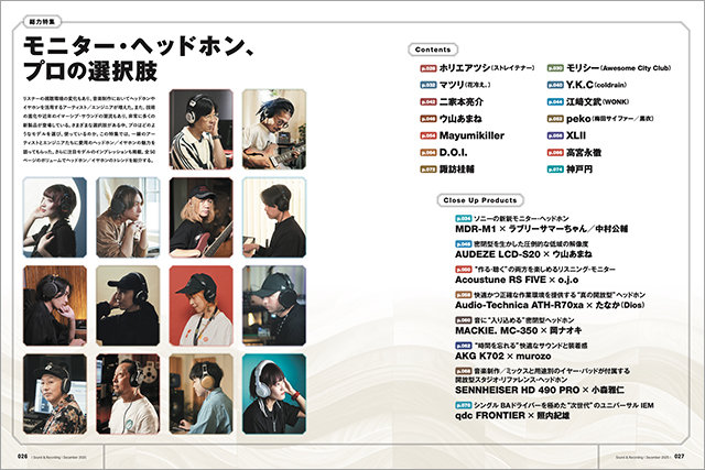 この特集では、プロ諸氏に愛用ヘッドホンについてインタビューし、仕事での有用性を語っていただく。さらに、各社の注目製品のインプレッション記事も掲載。巻頭インタビューと合わせて、50ページにわたりモニター・ヘッドホンのトレンド感を探っていく。