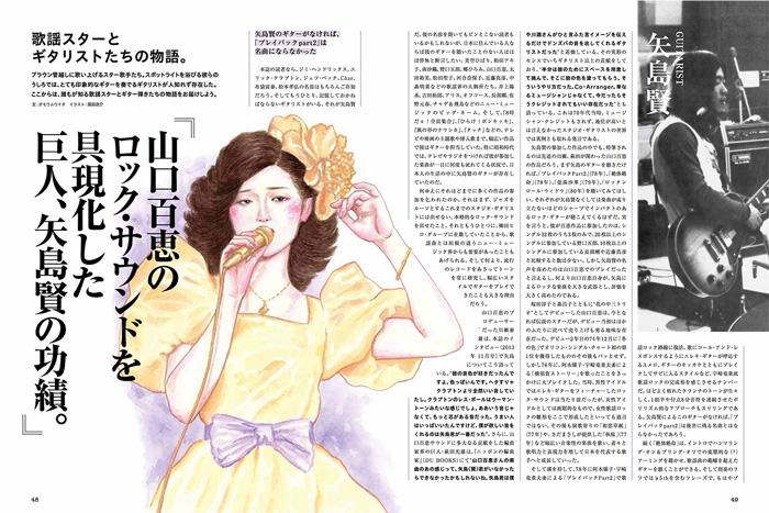 というわけで、今回はおもに70〜80年代をターゲットとし、数々の輝かしきスターが歌った楽曲のギター・プレイと、その弾き手たちの物語をお送りしたい。また、同時代の歌謡界において、ギターをアイデンティティとしていた野口五郎とCharがなんと40年ぶり(!)に邂逅した特別対談も実現。さらに“歌謡曲以降=J-POP”の目線から、小室哲哉も登場してくれた。さまざまな切り口による本誌初の歌謡曲特集、全力の104Pをぜひご一読あれ。