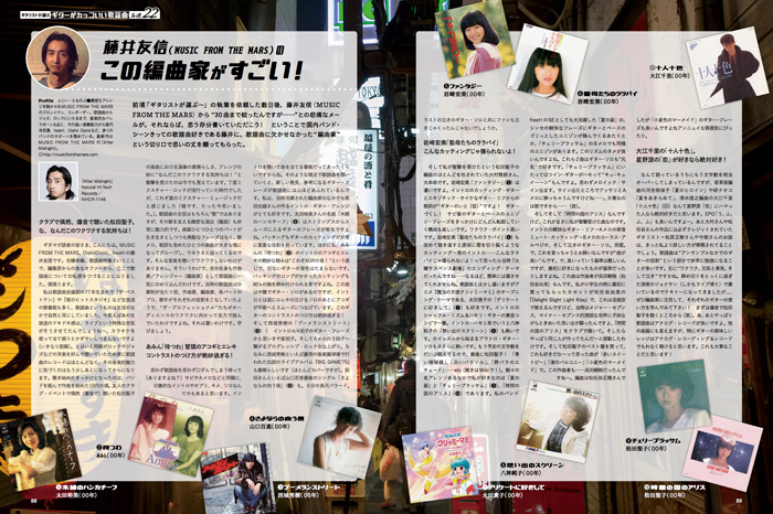さて、ここで質問。みなさんは“ギター目線”で歌謡曲を聴いたことがあるだろうか? “歌謡曲”と言うぐらいだから、もちろん歌が中心の音楽なのであって、特段意識して聴く人は少ないかもしれない。意識的にフレーズを聴き取ってコピーする、なんてギタリストもそんなにいないだろう。しかし! 改めて、山口百恵の「プレイバック part2」や中森明菜の「少女A」、寺尾聰の「ルビーの指環」などを“ギター目線”で聴き返してみてほしい。……めちゃくちゃギターがカッコいいではないですか!!! 最新のJ-POPでは考えられないほどサディスティックなサウンドだったり、ファンキーなカッティングだったり、そしてサンタナ顔負けの泣きに泣きまくるチョーキング(これホント多いです)など、もはや宝の山状態なのである。