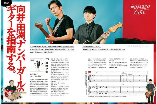 この表紙企画に合わせ、向井と田渕が特別にナンバーガールの名曲を直伝! ギターを抱えながら、向井は同時に酒をあおりながら、ふたりが生み出したギター・ワークの極意を教えてもらいます。