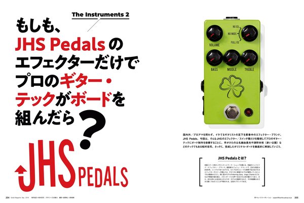 国内外/プロアマを問わず、イケてるギタリストの足下を席巻中のエフェクター・ブランド、 JHS Pedals。今回は、そんなJHSのエフェクター/スイッチ類だけを駆使してプロのギター・ テックにボード制作を依頼することに。手がけたのは名越由貴夫や津野米咲(赤い公園)などのテックでもある松村忠司。完成したオリジナル・ボードを徹底的に解剖していきます。