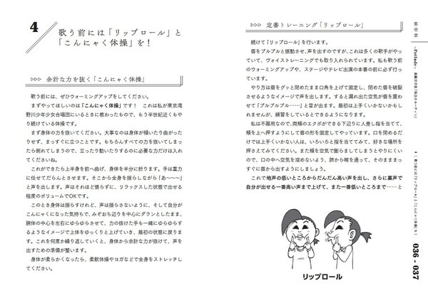 本書は、約30年にわたるプロ歌手としてのキャリアで培われた「歌うためのノウハウ」と、「残酷な天使のテーゼ」「魂のルフラン」の歌唱法について、本人から直接指導を受けられる内容となっています。