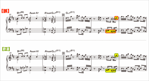 訂正箇所は、右手3拍目ウラ【レ→レ】です。
