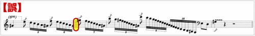 譜例⑦2段目、1小節目3拍目あとに不要な小節線が入っておりました。