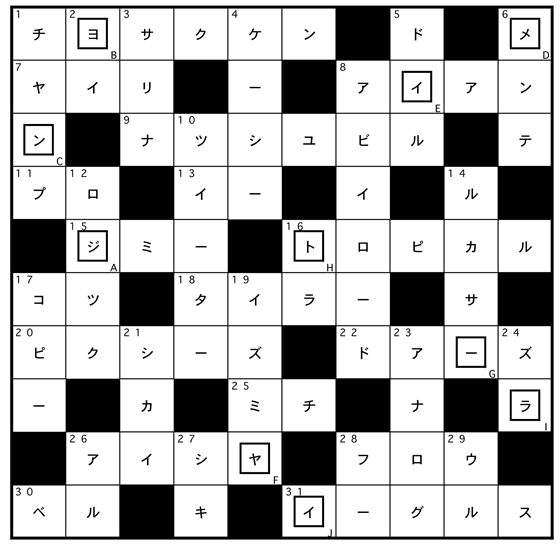 アフターケア2011.03.22ギター・マガジン2009年7月号ギター・マガジン2009年7月号にて、以下の誤りがありました。読者の皆さまにご迷惑をおかけいたしましたことを深くお詫び申し上げ,ここに訂正させて頂きます。P.181ギター・クロスワードの『先月号の答え』に誤りがありました。第32回(2009年6月号掲載)の答えは,以下になります。