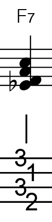 [Chord][Solo]2段目1小節目(F7)の五線譜(※タブ譜に誤りはございません)