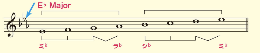 【正】「変ホ長調=E♭ Major=Es dur」の音階