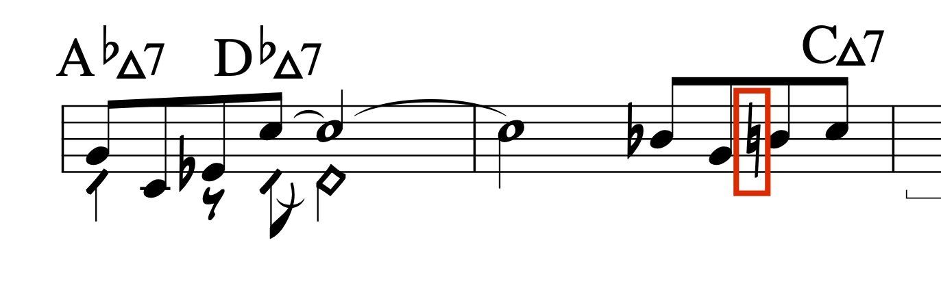 メロディのB音にナチュラル記号が抜けていました。正しくは以下の通りです。