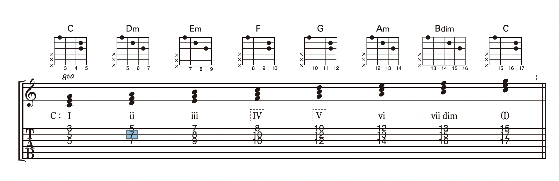 Ex-11 ふたつ目(Dm)のコードのタブ譜