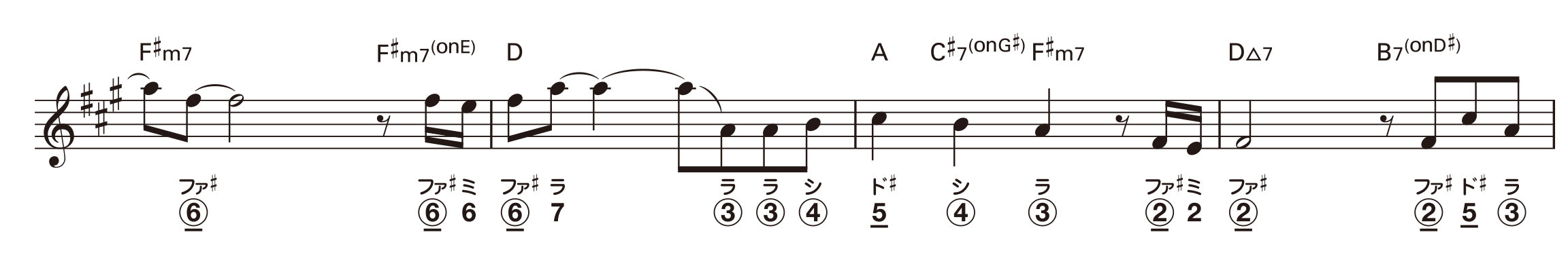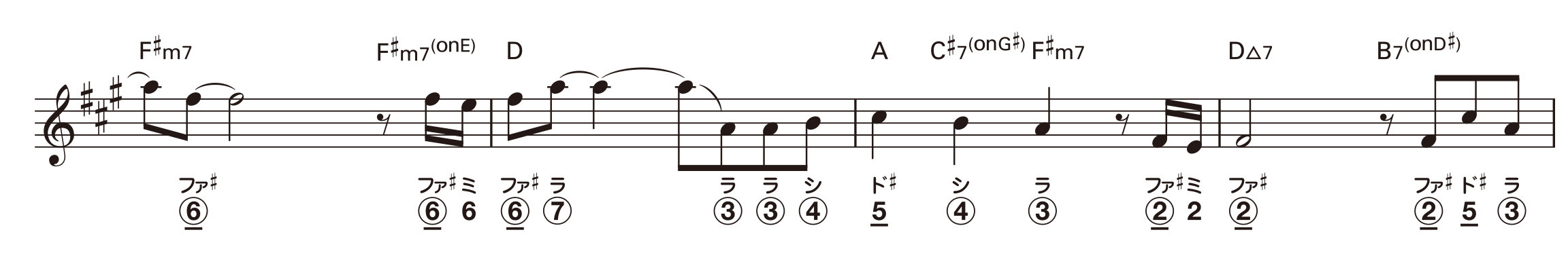 下から2段目、2小節目の2音目(ラの音)の穴番号