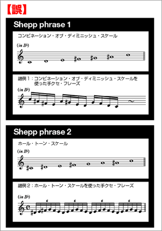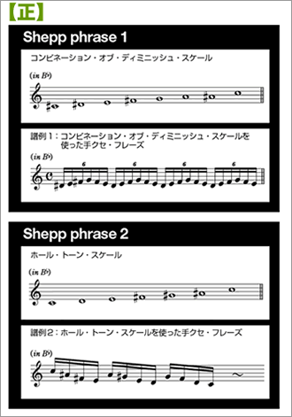 Shepp phrase1の譜例と、Shepp phrase2の譜例が入れ替わって掲載されています。