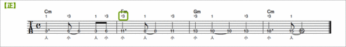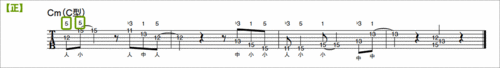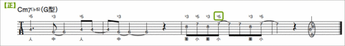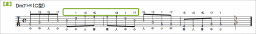 【正】Cm7(♭5)の場合、6弦6fのB♭音から弾き始めるのは