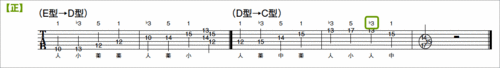・3段目 4小節目 3拍目 1弦13フレットの度数:【誤】1 【正】♭3