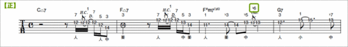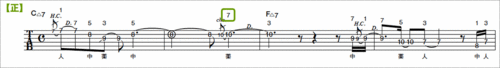 【誤】♭7 ♭3 ♭5 ♭7 ♭7 ♭5 ♭3 1