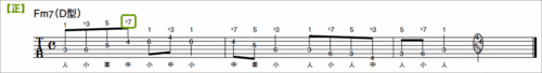 【誤】Cm7(♭5)の場合、6弦7fのB♭音から弾き始めるのは