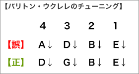 KORG HA-40紹介記事の“ウクレレ・チューニングのおさらいコーナー”の中で、バリトン・ウクレレのチューニングが誤ってADBEと記載されておりますが、正しくはDGBEです。