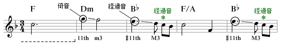 ・譜例 Ex-51の3小節目と5小節目 経過音を示す "* "印の位置
