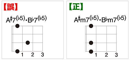 A#m7(♭5)・B♭m7(♭5)のコード・ダイアグラムに誤りがありました。