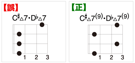 C#△7(9)・D♭△7(9)のコード・ダイアグラムに誤りがありました。
