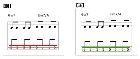 アフターケア2011.04.08DVD版 スラップ・ベースの常套句(初版~第9版)DVD『DVD版 スラップ・ベースの常套句』(2001年12月14日発売)にて、以下の誤りがありました。読者ならびに関係者の皆様にご迷惑をおかけいたしましたことを深くお詫び申し上げ、ここに訂正させて頂きます。付属の完全コピー譜:P.2・上から3段目/3小節目正しい譜例は下記の図をご参照ください。