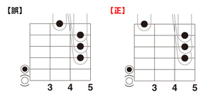 【正】Fはセーハとにぎり、どちらでも良いですが、まずはセーハで練習してください。Fがにぎりの時はAdimもセーハしないフォームで弾きましょう。