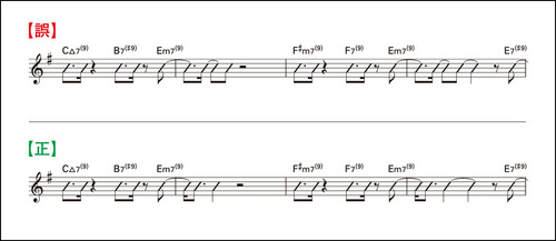 課題曲「9th signal」の譜面8段目 Drum Solo 12小節目~15小節目にかけて誤りがありました。以下、該当部分の正誤譜面になります。