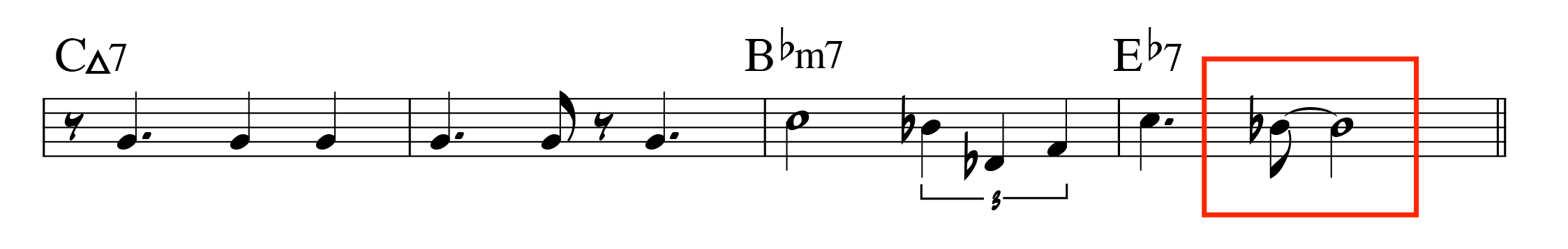 8小節目にフラット記号が抜けていました。以下が正しい譜面です。