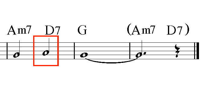 [B]パート冒頭のコード進行を以下の通りに改めます。