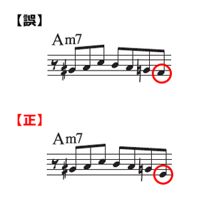 【誤】2段目1小節目の4拍目ウラの音=F♯