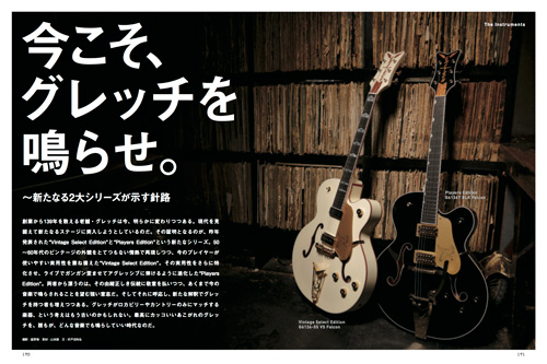 創業から134年を数える老舗・グレッチは今、明らかに変わりつつある。現代を見据えて新たなるステージに突入しようとしているのだ。その証明となるのが、昨年発表された"Vintage Select Edition"と"Players Edition"という新たなシリーズ。50~60年代のビンテージの外観をとてつもない情熱で再現しつつ、今のプレイヤーが使いやすい実用性を兼ね備えた"Vintage Select Edition"。その実用性をさらに特化させ、ライブでガンガン歪ませてアグレッシブに弾けるように進化した"Players Edition"。両者から漂うのは、その由緒正しき伝統に敬意を払いつつ、あくまで今の音楽で鳴らされることを望む強い意志だ。そしてそれに呼応し、新たな解釈でグレッチを持つ者も増えつつある。グレッチがロカビリーやカントリーのみにマッチする楽器、という考えはもう古いのかもしれない。最高にカッコいいあこがれのグレッチを、誰もが、どんな音楽でも鳴らしていい時代なのだ。