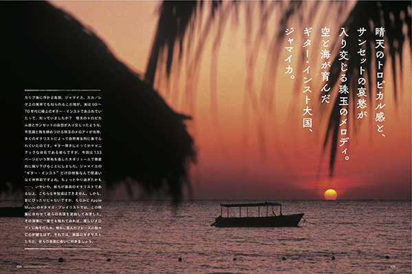 カリブ海に浮かぶ島国、ジャマイカ。スカ/レゲエの発祥でも知られるこの地が、実は60 〜70年代に極上のギター・インストであふれていたって、知っていましたか? 晴天のトロピカル感とサンセットの哀愁が入り交じったような、不思議と胸を締めつける珠玉のメロディが当時、多くのギタリストによって自然発生的に奏でられていたのです。ギター弾きにとって少々マニアックな存在である彼らですが、今回は133ページという常軌を逸した大ボリュームで徹底的に掘り下げることにしました。ジャマイカの"ギター・インスト"だけの特集なんて間違いなく世界初ですよね。ちょっとやり過ぎたかも......。いやいや、彼らが最高のギタリストである以上、こちらも手加減はできません。しかも、夏にぴったりじゃないですか。ちなみにAppleMusicのギタマガ・プレイリストでは、この特集に合わせて彼らの名演を選曲してみました。その演奏に一度でも触れてみれば、美しいメロディに胸を打たれ、機知に富んだフレーズの数々に心が躍るはず。それでは、楽園のギタリストたちと、彼らの音楽に会いに行きましょう。