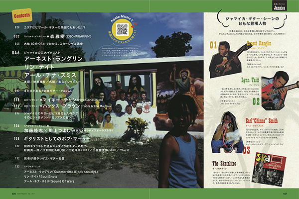 特集のド頭は、森雅樹(EGO-WRAPPIN')のスペシャル・インタビューから始めよう。本誌読者にはジャズやブルース、R&Bなどのイメージが強い森ラッピンだが、過去にはスカ/ロックステディなどのコンピレーション・シリーズを監修していたこともあるなど、今回のテーマであるジャマイカ音楽にも多大な愛を持っているのだ。独自の観点から見た、ギター・ミュージックとしてのスカ/ロックステディ/レゲエとは?