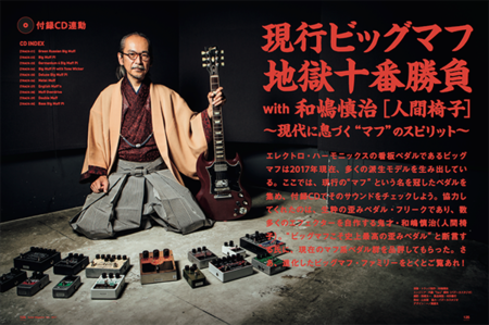エレクトロ・ハーモニックスの看板ペダルであるビッグマフは2017年現在、多くの派生モデルを生み出している。ここでは、現行の"マフ"という名を冠したペダルを集め、付録CDでそのサウンドをチェックしよう。協力してくれたのは、生粋の歪みペダル・フリークであり、数多くのエフェクターを自作する鬼才・和嶋慎治(人間椅子)。"ビッグマフこそ史上最高の歪みペダル"と断言する氏に、現在のマフ系ペダル群を品評してもらった。さあ、進化したビッグマフ・ファミリーをとくとご覧あれ!