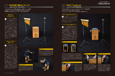 close up!は、カホンにミニ・パーカッションなどの打楽器を"ちょい足しする"=add-on(アドオン)にフォーカス! 近年、独自の進化を遂げているカホン演奏だが、音色やリズムに"彩り"を足せるアドオン・セッティングで、ドラム・セット的なアプローチをするパーカッショニスト/ドラマーがにわかに増えている。今回はそんなアドオンの魅力と可能性に迫ってみました! 国内入手可能な"アドオン・アイテム"のカタログつき!