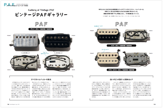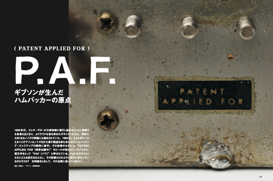 1950年代、エレキ・ギターが大衆音楽に根ざし始めるとともに演奏する会場も広くなり、よりラウドな音を求めたギタリストたちは、同時に大きくなるノイズの問題にも悩まされていた。1955年、そんな声にこたえるべくギブソンはノイズを打ち消す構造を持ち合わせたハムバッキング・ピックアップの開発に着手。その初期のものには"PATENT APPLIED FOR(特許出願中)"のシールが貼られていたことから、頭文字をとって"PAF(パフ)"と呼ばれている。PAFはギタリストたちにどんな変化をもたらし、その影響はどのように現代に伝わっているのだろうか? 本特集をとおして、その全貌に迫っていきたい。