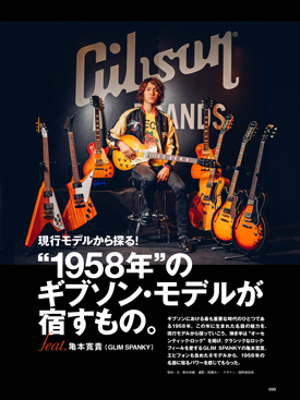 ギブソンにおける最も重要な時代のひとつである1958年。この年に生まれた名器の魅力を、現行モデルから探っていこう。弾き手は"オーセンティック・ロック"を掲げ、クラシックなロック・フィールを愛するGLIM SPANKYの亀本寛貴。エピフォンも含めた8モデルから、1958年の名器に宿るパワーを感じてもらった。