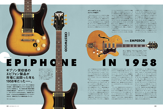 ギブソンが1958年というターニング・ポイントを迎えるその前年、変革の先駆けとしてライバル会社であったエピフォンを買収した。そして現在も続く両者の関係が市場に顔を出す、つまりギブソン・メイドのエピフォン・ギターがリリースされたのもまた、1958年であったのだ。ここからはそんな変革期のギブソン・ファミリーとなった、当時のエピフォンの動向を追っていこう。