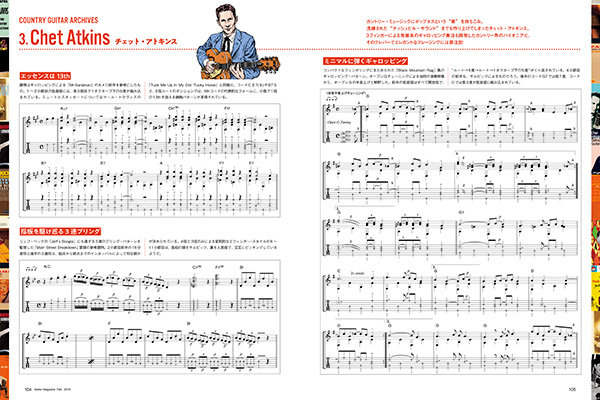 カントリー・ギター奏法の実践編!特集内に登場した6人の天才が生み出した、必殺のカントリー・フレーズ集を特別にお送りしよう。ギャロッピング奏法に超高速ピッキングなどなど......もはや "シグネチャー・フレーズ"とも呼んでいい彼ら独自のプレイ・スタイルに学べば、新たな地平が見えるはず!