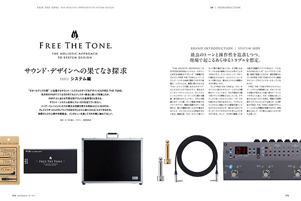 "ギターとアンプの間"に位置するサウンド・システムのすべてをデザインするFREE THE TONE。先月号のPART.1ではその中でもエフェクター製品に絞って特集したが、PART.2にあたる今回は同ブランドの真骨頂とも言える、サウンド・システム全体にフォーカスを当てていきたい。トップ・ミュージシャンたちが絶大な信頼を寄せる理由はどこにあるのか、そしてどうやったらそのノウハウを自分のシステム取り入れることができるのか、実際のシステム例や市販製品、インタビューを通じてその片鱗に触れてほしい。