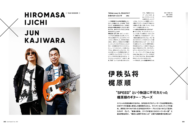 スペシャル対談を締めくくるのは、SPEEDのプロデューサーである伊秩弘将と、ほぼすべての楽曲に参加した梶原順のお2人。ファンキーなカッティングを始め、多彩なスタイルがつまったSPEEDのギター・アレンジはいかにして生まれたのか? そして、"楽曲は脚本。すべてが彼女たちのストーリーの一部"と語る伊秩弘将が、"絶対に必要不可欠だった"と称する梶原順の役割とは?