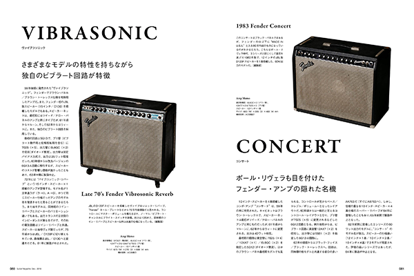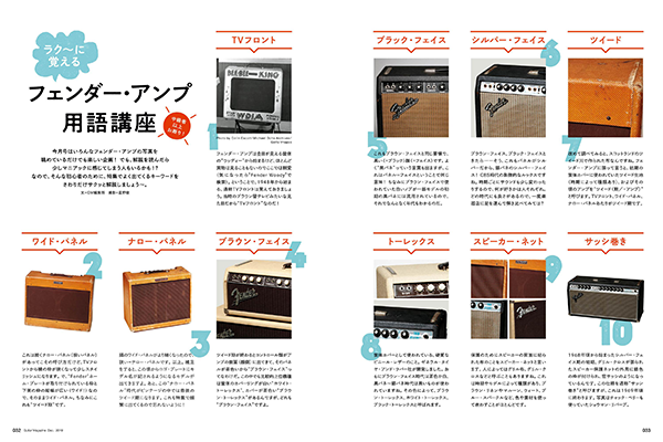 12月号は、今、最も愛用者が多いと言っても過言ではないフェンダー・アンプの大特集。主役となるのはエレクトリック・ギターの歴史を変えた名アンプの数々だ。貴重な写真満載のビンテージ大図鑑に加えて、愛用者に聞く音作りのノウハウ、最新モデルの紹介など、さまざまな角度でフェンダー・アンプを紐解いていこう。