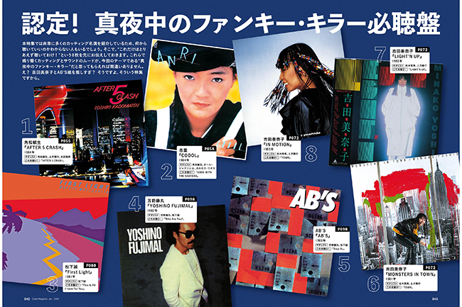 本特集では非常に多くのカッティング名演を紹介しているため、何から聴いていいのかわからない人もいるでしょう。そこで、"これだけはとりあえず聴いておけ!"という8枚を先にお伝えしておきます。これらで鳴り響くカッティングとサウンドのムードが、今回のテーマである"真夜中のファンキー・キラー"だと思ってもらえれば間違いありません。え? 吉田美奈子とAB'S組を推しすぎ? そうですよ、そういう特集ですから。