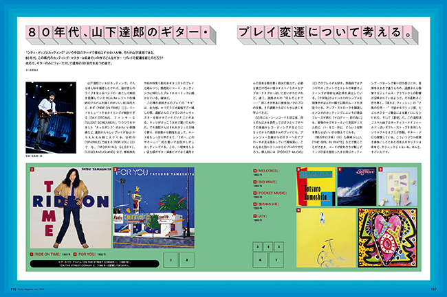 "シティ・ポップとカッティング"という今回のテーマで最もはずせない人物、それが山下達郎である。80年代、この稀代のカッティング・マスターは、自身のソロ作でどんなギター・プレイの変遷を経たのだろう? 改めて、ギターのみにフォーカスして達郎の80年代を見つめ直す。また、氏が他アーティストでギターを弾いているシティ・ポップの名作も紹介!