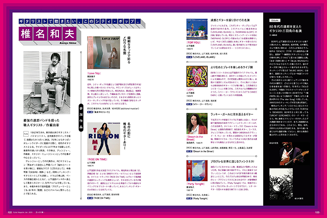 大ヒットを記録したギター・マガジン2019年4月号『シティ・ポップを彩った、カッティング・ギターの名手たち』。今月はそのシリーズ続編である。題して、"真夜中のファンキー・キラー編"。"昼下がりのメロウ・グルーヴ編"と題した前回は、70年代から80年代前半までのメロウなサウンドを中心としていたが、今回は80年代だけに限定した内容だ。