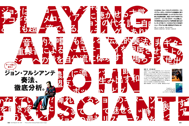 というわけで、本誌では久しぶりに、"レッド・ホット・チリ・ペッパーズのギタリスト=ジョン・フルシアンテ"の特集をお届けする。残念ながら本人の最新インタビューはとれなかったが、今回はレッチリの全参加作品のインタビュー合計7本を収録したほか、機材紹介とプレイ分析もがっつり展開し、ムック本ばりのボリュームで構成した。現在、ジョンを擁するレッチリは新作に取り組んでいるという。今この瞬間にも、海を隔てたどこかであの4人が集まり、音を出しているかもしれないのだ。そのワクワク感とともにこの特集を読んでもらえたら幸いである。