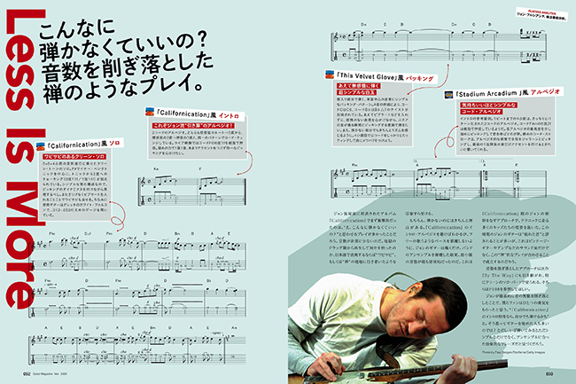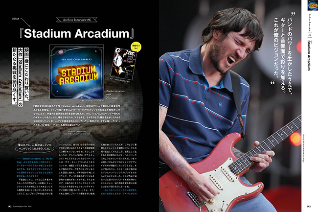 こうして僕らはどんどんジョンに夢中になっていく。あこがれの気持ちを抱いてしまう。そんな男をギター・ヒーローと呼ばずしてなんと呼ぶ。ちなみに本誌においてギター・ヒーローという言葉は、考えうる限り最大の賛辞である。そんなジョン・フルシアンテがあのレッチリに帰ってきただと? けっこうじゃないか。ギタマガがやらずに誰がやる。