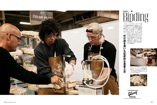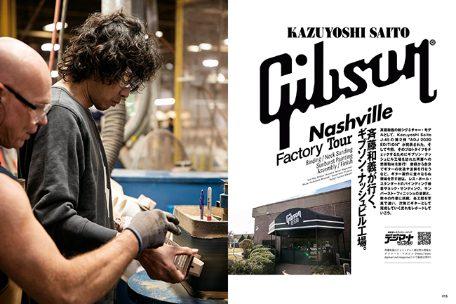 斉藤和義の新シグネチャー・モデルとして、Kazuyoshi Saito J-45の第2弾"ADJ 2020 EDITION"が発表された。そして今回、そのプロトタイプをチェックするためにギブソンUSAナッシュビル工場を訪れた斉藤への密着取材を敢行! 普段から自分でギターの改造や塗装を行なうなど、ギター製作に並々ならぬ興味を示す彼は、レス・ポール・スタンダードのバインディング接着やネック・サンディング、サンバースト・フィニッシュの塗装と、数々の作業に挑戦。各工程を写真で追い、次第にギターとして完成していく流れをレポートしていこう。