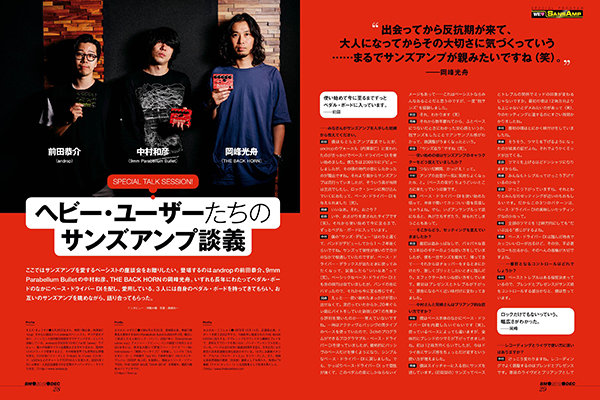 ・ヘビー・ユーザーたちのサンズアンプ談義 前田恭介(androp)×中村和彦(9mm Parabellum Bullet)×岡峰光舟(THE BACK HORN)