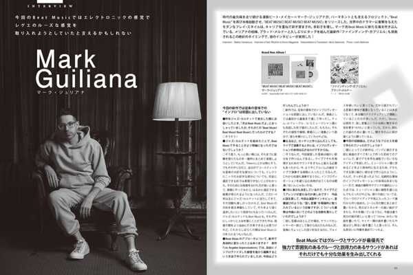 モダンなプレイ・スタイルを生み出し世界中のドラマーに衝撃を与えたビート・メイカー=マーク・ジュリアナ。インタビューでは、新作『BEAT MUSIC! BEAT MUSIC! BEAT MUSIC!』はもちろんのこと、他のドラマーから受けた影響についても語ってもらった。ルーツ・ミュージックを独自の奏法へ昇華していくプロセスと、彼の現在に迫る。