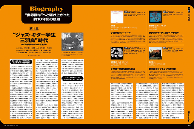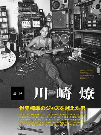 去る4月13日、川崎燎が鬼籍に入った。1947年生まれ、学生時代にジャズ・ギタリストとして即座に頭角を現わしたのち渡米、ギル・エヴァンスらレジェンドたちの寵愛を受け躍進、晩年はバルト三国のひとつエストニアに移住......と並べただけで、彼がいかに激動の人生を送ったかがわかるだろう。今回はジャズメンとして出発した川崎が、決してその範疇にとどまらず、ギターを通してクロスオーバーに音楽の心理を追求し続けたことに敬意を払い、追悼企画として特集を組んだ。